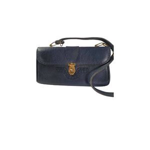 Vintage Ronay Blue Leather Shoulder Bag Rectangle Envelope Style Toggle Close