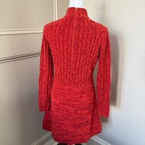 Vintage Roncelli Wool Boucle Knit Space Dyed Red/Orange Sweater Dress 1970s
