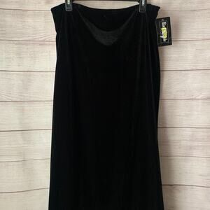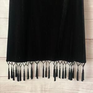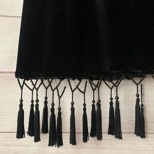 Vintage Ronni Nicole Black Velvet Maxi Skirt Beaded Tassels Back Slit Petite L