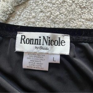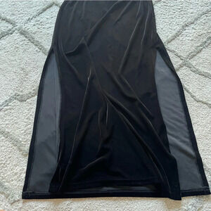 Vintage Ronni Nicole black velvet long maxi skirt pull on side slits large new