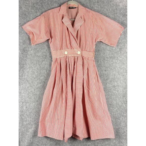 Vintage Ronnie Heller Designs For MJ Dress Womens 4 Red White Stripe Retro USA