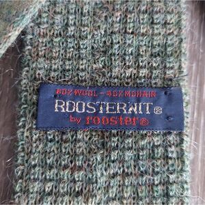 Vintage Roosternit Mohair Wool Square Tip Mens Rooster Tie Green Tan