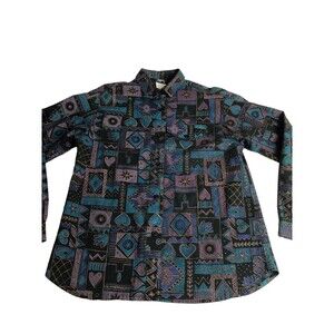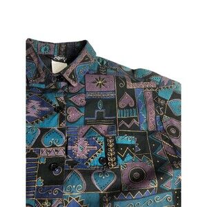 Vintage Roper Shirt Women Large Aztec Geometric Hearts Cowgirl Western 90s 80s