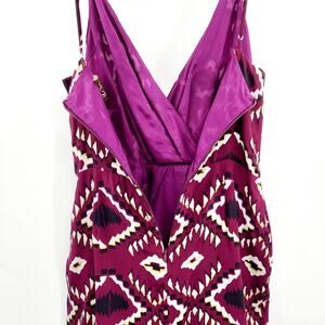 Vintage Rory Beca 100% Silk Purple Black White Geometric Print Mini Dress Sz 2