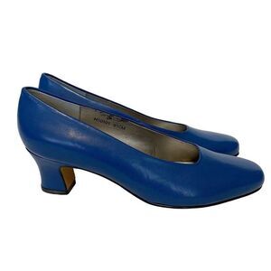 Vintage Ros Hommerson Leather blue slip on almond toe high heel pumps size 9.5. Spool heel approximately 2”. Gently used condition.