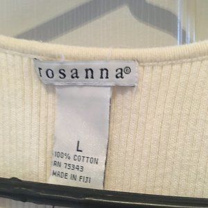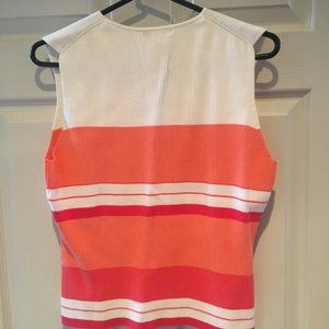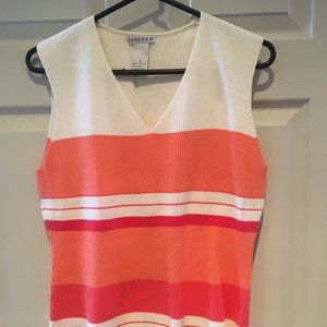 Vintage Rosanna sweater in size large. Red, coral/orange, and white striped ribbed knit. V-Neck. Great condition. No stains or holes. Gently worn.
