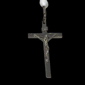 Vintage Rosary White Acrylic Beads Silver Tone Metal Italy Five Decade