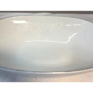 This serving platter crafted by Rose China in Japan features a delicate floral design in the Serena pattern. Its vintage charm adds elegance to any setting, making it ideal for serving meals or as a decorative piece. The oval shape provides ample space for various dishes, enhancing your dining experience.
