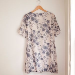 *Vintage* Rose Floral Print Ivory Gray-Blue Dress
