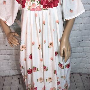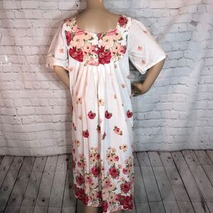 Vintage Rose Print 50s Style Housedress Possibly Handmade Bib Collar M/L?