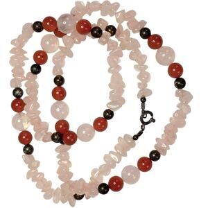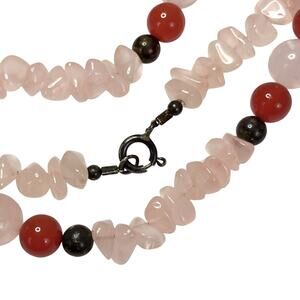 Vintage Rose Quartz Carnelian Beaded Necklace with Sterling Clasp 1980s 1990s