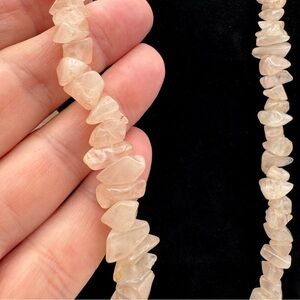 Vintage Rose Quartz Chip Bead Necklace 33” Pink Gemstone Barrel Clasp