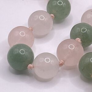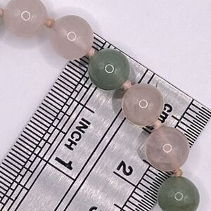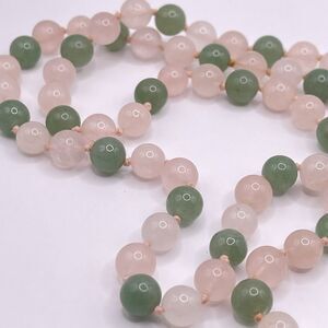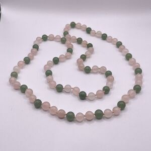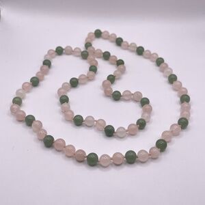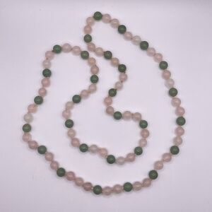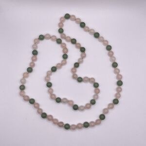 Vintage Rose Quartz Jade Hand Knotted Stone Beaded Necklace 32" Long Pink Green