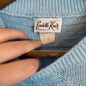 This vintage sweater is by Cuddle Knit and a size small. It has a textured rose pattern throughout. It is in EUC with no pulls, stains, or holes.