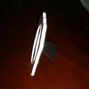 Vintage Jennifer Moore ceramic picture frame with a rose floral pattern and glossy finish in very good used condition. The frame has a glass cover and cardboard backing. The frame is standing, for tabletop. This fits a 5x7 photo and the frame size is 7.5" x 9.5" and can be displayed vertically or horizontally. Smoke and pet free home.