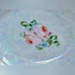 Vintage Rose Trinket Dish Iridescent Lusterware Hand Painted Floral Cottage Core