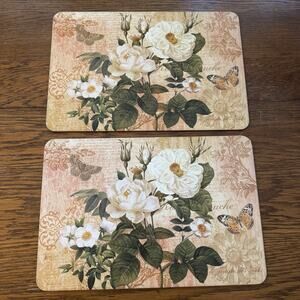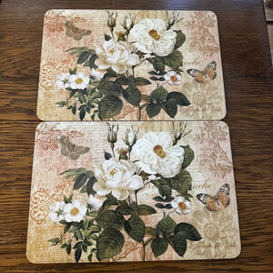 Vintage Roses Placemats Set of 4 Cork Backing Hard Butterfly Floral Victorian