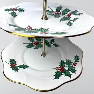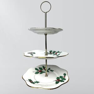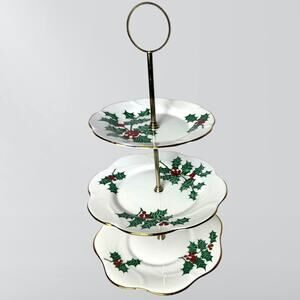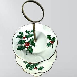 Vintage Rosina Bone China Queens Yuletide Three Tiered Serving Tray