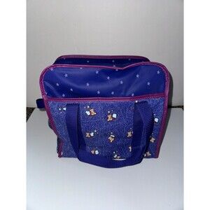 This vintage Ross Similac baby diaper bag is the perfect accessory for parents on-the-go. The bag features a cute teddy bear pattern in blue, with a medium size that is perfect for carrying all your baby's essentials. The bag is made of durable vinyl material and is insulated to keep your baby's food and drinks cool.