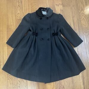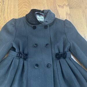 Vintage Rothschild Girls Wool Blend Double-Breasted Velvet Bows Black Size 4 EUC