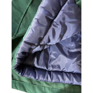 This beautiful vintage Rothschild coat features a rich green base with navy blue faux fur trim on the removable hood and velvet bow detailing down the front. Designed with a full zip closure, additional snaps, and an insulated lining for warmth. Details include elastic cuff sleeves, bungee-style waist adjustment, and front pockets with velvet trim. Midi-length cut offers elegant coverage. Perfect for fall and winter wear, whether for city outings, vintage styling, or cold-weather travel.
