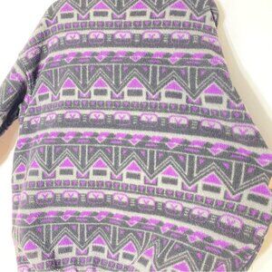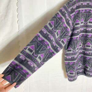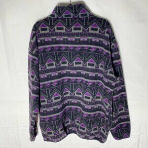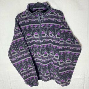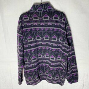 Vintage Rough Dress Purple Grey Geometric Print Half Zip Pullover Fleece XL