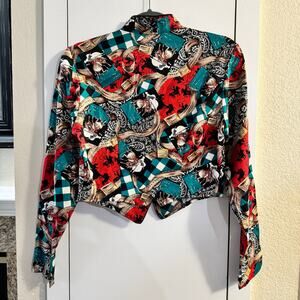 Vintage RoughRider Made in USA Western Cropped LS Top Shirt Small Cowgirl Rodeo