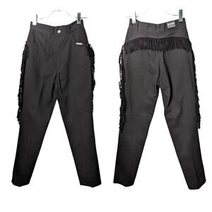 Vintage Roughriders by Circle T Black Jeans High Rise Velvet Fringe 28" Waist