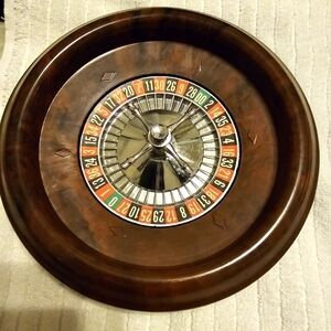 Vintage Roulette Wheel w 12" x 24" 3 color layout & Ball