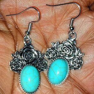 Vintage Round Ancient Silver Charm Geometric Pattern Pinestone Rhinestone Embossed Earrings Necklace Set.Beautiful set
