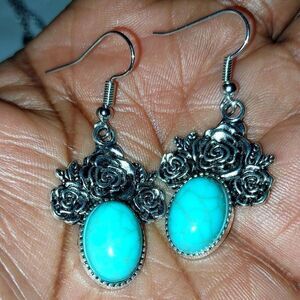 Vintage Round Ancient Silver Charm Geometric Pattern Pinestone Rhinestone Embossed Earrings Necklace Set.Beautiful set