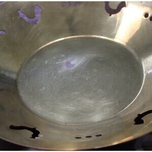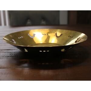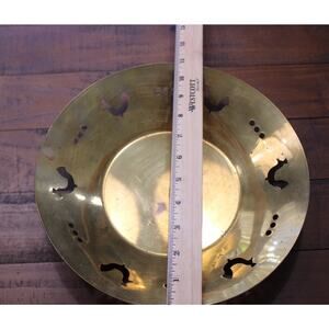 Vintage Round Brass Bowl with Cutout Rooster Chicken Design 11" Fruit Farmhouse