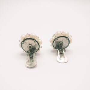 Vintage Round Cluster Earrings Faux Pearl Faceted Beads Pink Blue Fruit Salad