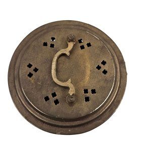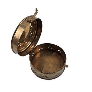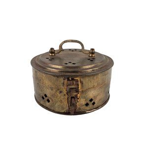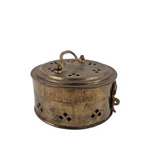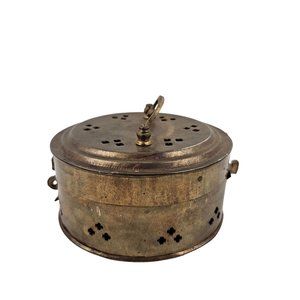 Vintage Round Cricket Keeper Box Trinket Potpourri Brass Handle Latch Lock