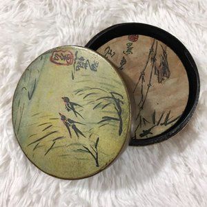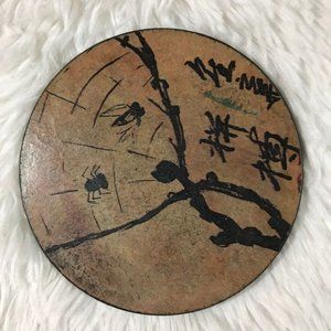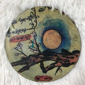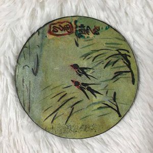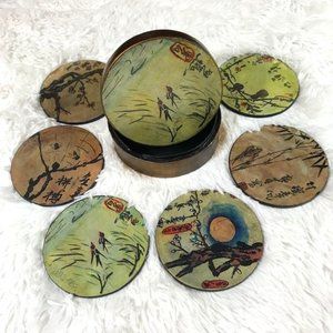 Vintage Round Glazed Hand Painted Tranquil Garden Coasters w/ Lidded Box