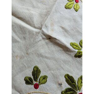 Vintage Round Linen Tablecloth With Red & Green Embroidery Floral Design 20"