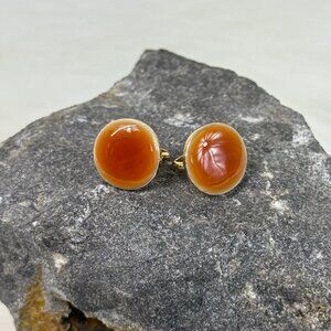 Vintage Round Orange Gold Tone Clip-On Earrings