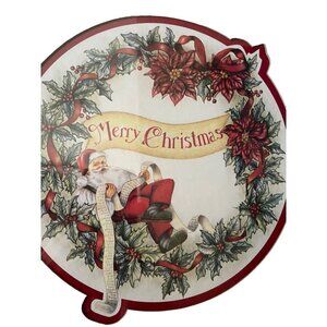 Vintage Round Santa "Checking His List" Merry Christmas Holiday Wall Decor Plaqu