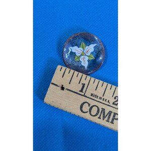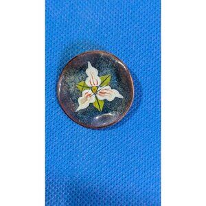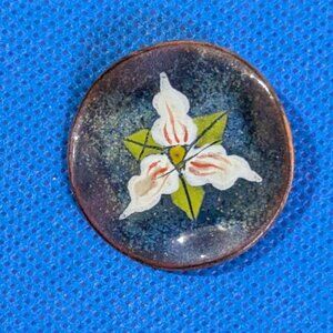Vintage Round "Star & Flower" Enamel Brooch Pin copper 1.5"