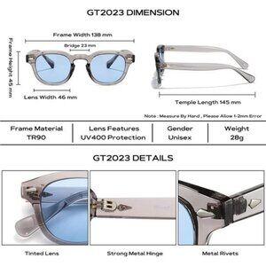 PRODUCT DIMENSIONS - Lens Width 46mm(1.81 inches)- Frame Height 45mm(1.77 inches)- Frame Width 138mm(5.43 inches)- Temple Length 145mm(5.71 inches)- Nose Bridge 23mm(0.91 inches)- Lightweight 28g.