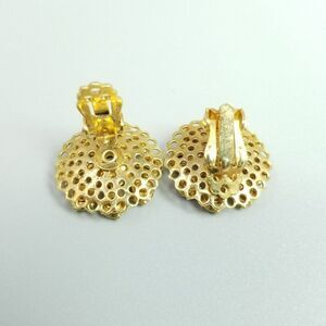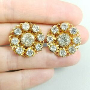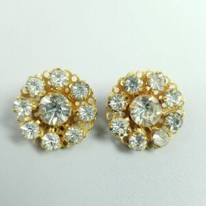Vintage Round Rhinestone Cluster Clip On Earrings Prong Glass Stones Gold Tone