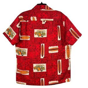 Vintage Roundy Bays Surf Hawaiian Shirt Size M Woody Print Red Beach