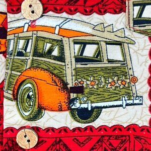 This vibrant Hawaiian shirt by Roundy Bays showcases an eye-catching surf and woody car print. Crafted from 100% polyester, it offers both comfort and style for casual outings or themed events.