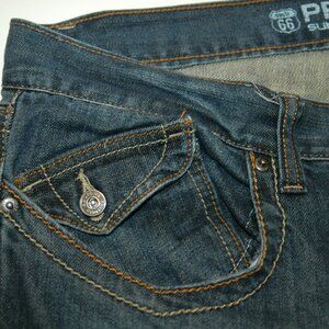 Vintage Route 66 Jeans Premium Size 36x32 Slim Straight Leather Stitch Button Rear Pockets