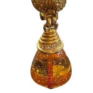 Vintage Roxanne Assoulin Amber Glass & Crystal Dangle Gold Tone Clip Earrings