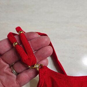 Vintage Roxanne One Piece Swimsuit Red Size 34B Small Ruched Beach Textured