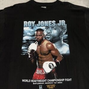 Subject: Roy Jones Jr. boxing graphic tee with event artwork.