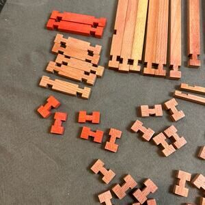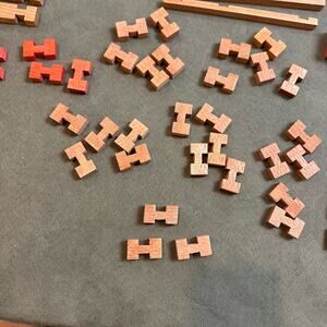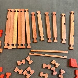 Vintage Roy Toy Wooden Building Blocks Interlocking Assorted Lot ~57 Pieces