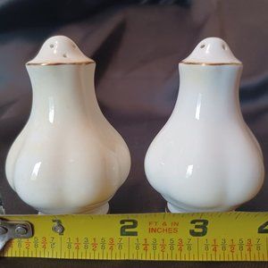 Adorable Vintage set of salt and pepper shakers. Royal Albert Val D'Or high end design. Bone China White with premium Gold Trim. One of the shakers has some yellowing, please see photos. Very nice preowned vintage condition.