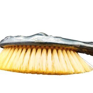 This vintage hairbrush features a detailed floral embossed silver handle, reflecting elegance and artistry. Crafted to provide a gentle grooming experience, it stands as a timeless piece of art with its exquisite design and quality materials. A charming addition to any antique collection, offering both style and utility.